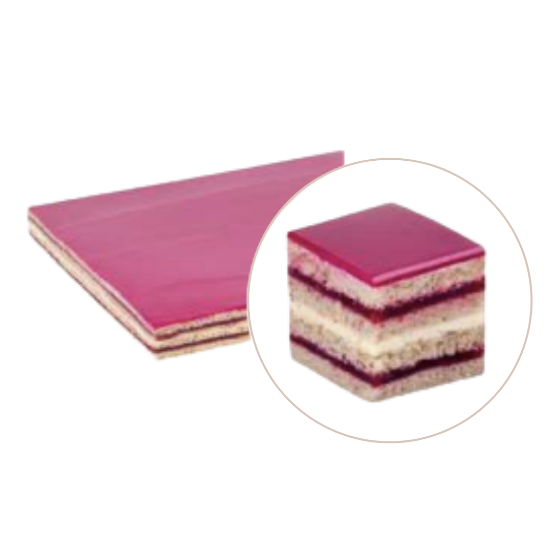 A contemporary twist on the classic opera highlighting the fresh flavour of raspberry.